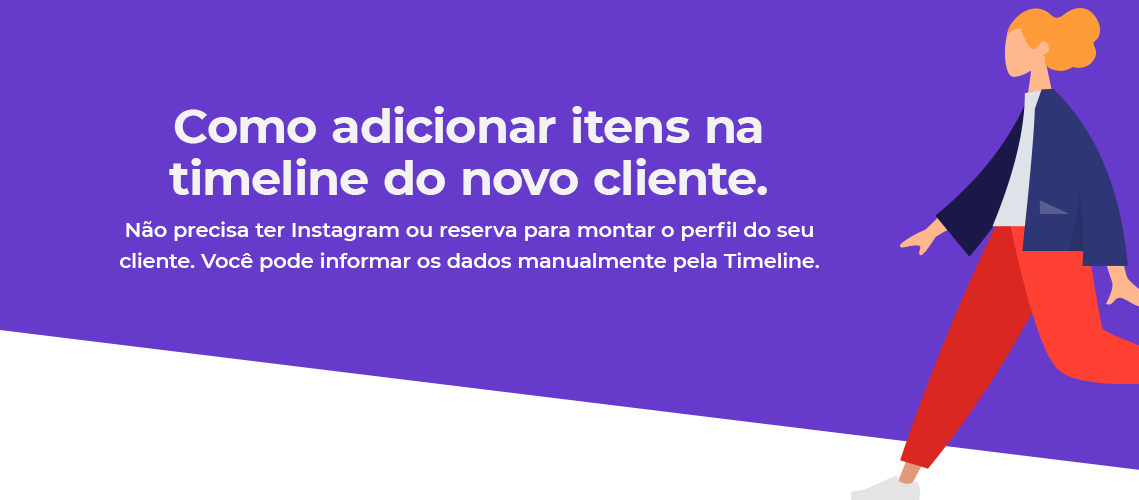 Na aba Timeline do seu cliente, clique no botão Adicionar item e preencha os campos.
