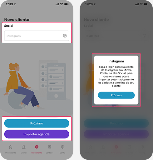 Para usar esta funcionalidade é necessário logar o Moksha na sua conta do Instagram antes de informar o Instagram do seu cliente.