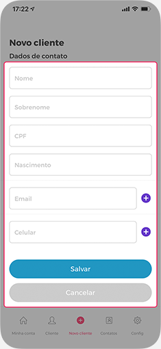 Nos dados de contato do seu cliente, os campos nome e sobrenome são os únicos obrigatórios para criar o contato, mas você pode usar esta tela como uma ficha de cadastro do seu cliente.